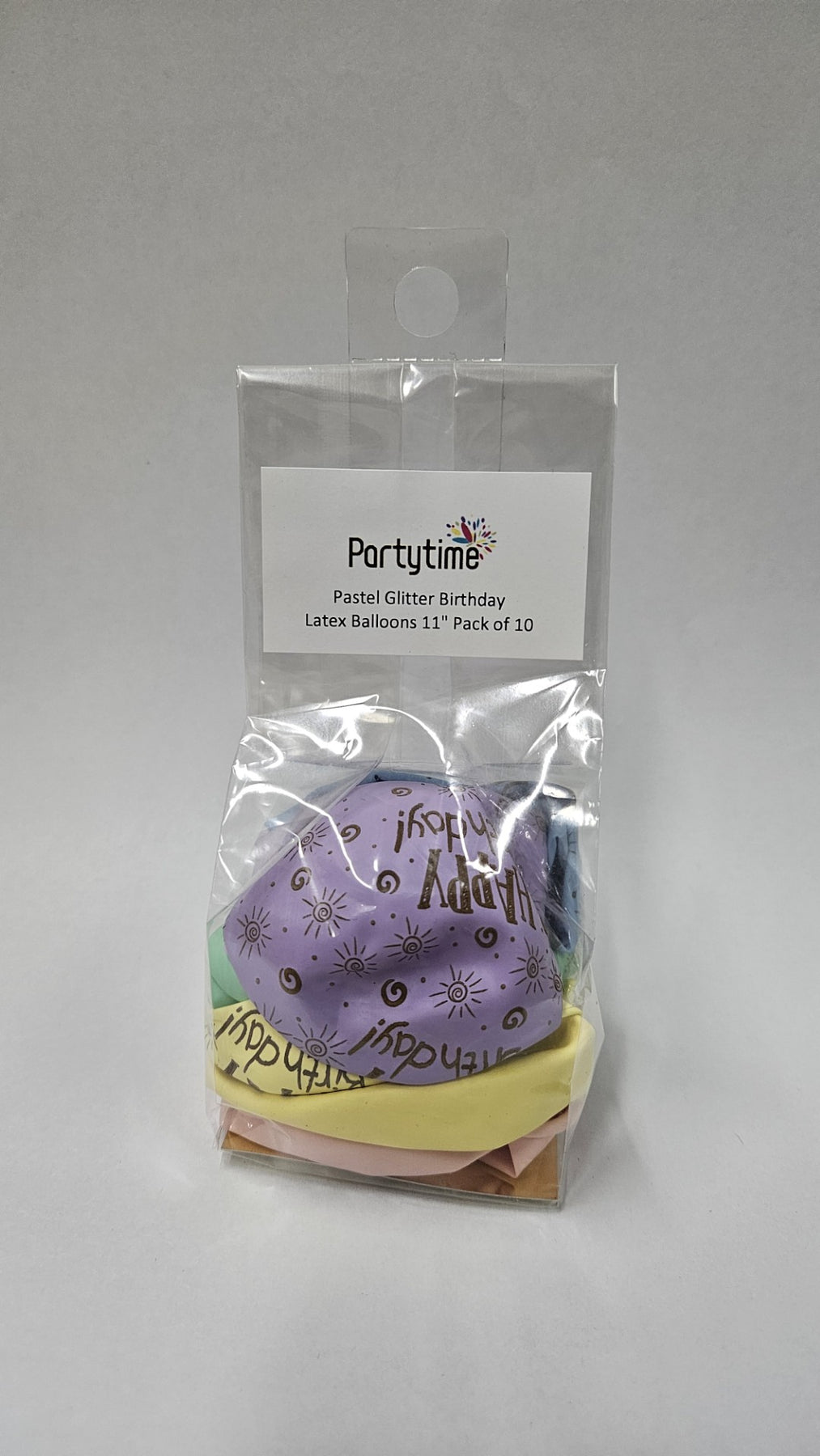 Add a touch of elegance to your birthday celebration with these Pastel Glitter Birthday Latex Balloons, featuring soft, sophisticated colors enhanced with shimmering glitter accents. Each 11-inch balloon combines delicate pastel tones with eye-catching sparkle, creating a refined yet festive aesthetic perfect for upscale parties and memorable events. This pack of 10 balloons provides generous coverage for decorating venues, creating balloon installations, or designing elegant backdrops.