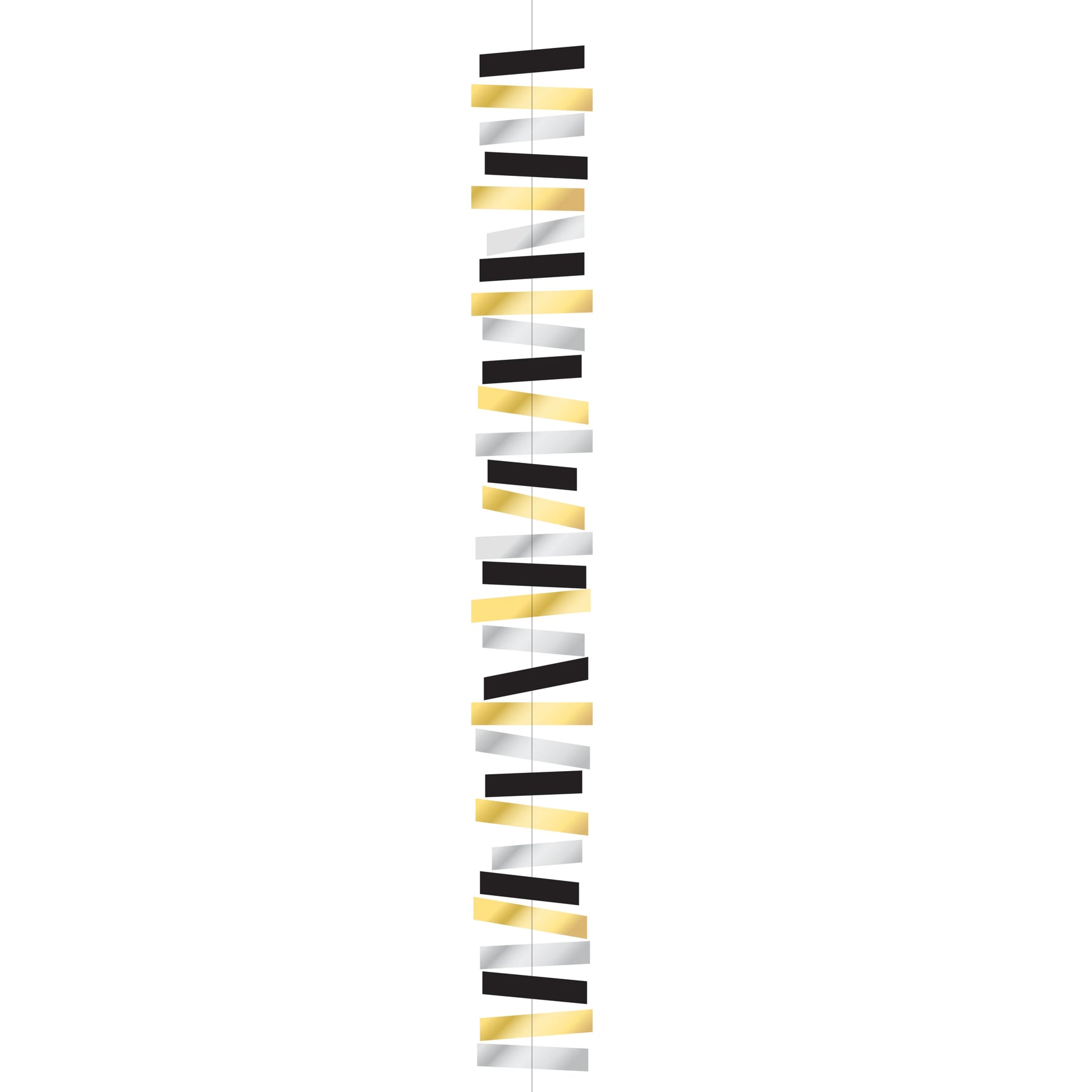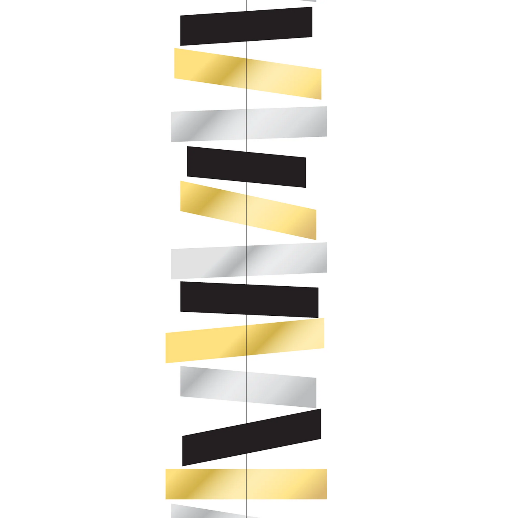 Add glamorous elegance to your event with our Metallic Gold Silver & Black Foil Hanging Decoration. This stunning three-tone design combines luxurious metallics to create a sophisticated atmosphere perfect for New Year's Eve, cocktail parties, weddings, and upscale celebrations.